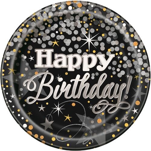 / Glitter Silver Birthday Plates 8pk
